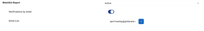 If toggle is enabled, then add an email to the Email List. You can add additional emails by clicking the + icon.